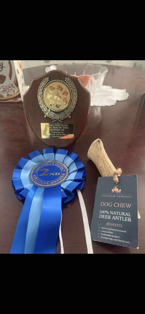 We rescued Enzo last October. He was very nervous of people and tended to snap and growl Every day Enzo’s confidence is growing with love and attention he is turning into a wonderful and independent dog. He goes out in the garden by himself. He goes to the groomers and doesn’t snap. Eats regular meals. Absolutely loves the car. Goes for walks without wanting to eat another dog. Loves his bed. So many little things making a beautiful dog. Look what he just achieved!